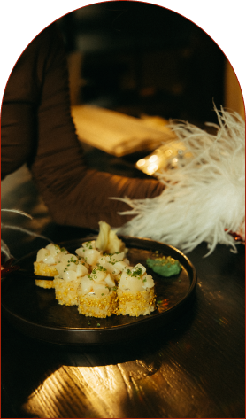 Оригинальные роллы со сливочным сыром, листом нори и филе угря в сочетании с нежным соусом и кусачкми трюфеля